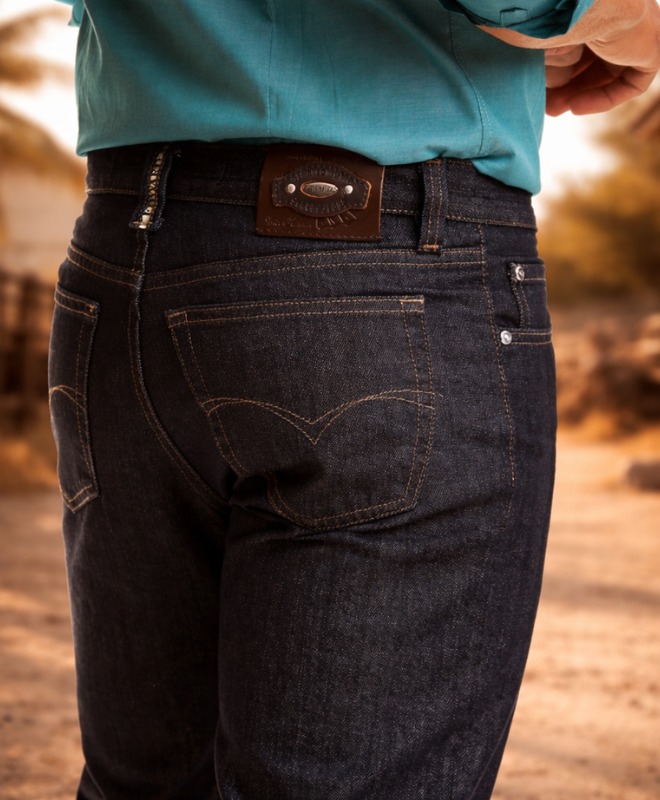 Jeans 7500 hombre color negro grafito, 100% algodón, con diseño recto desde la cadera hasta el tobillo. Ofrece un ajuste cómodo, ligeramente suelto en muslos y piernas, con tiro medio a la cintura. Su estilo clásico y versátil lo hace ideal para todo tipo de cuerpo, brindando alta movilidad y transpirabilidad. Perfecto para ocasiones casuales, de trabajo o uso diario.